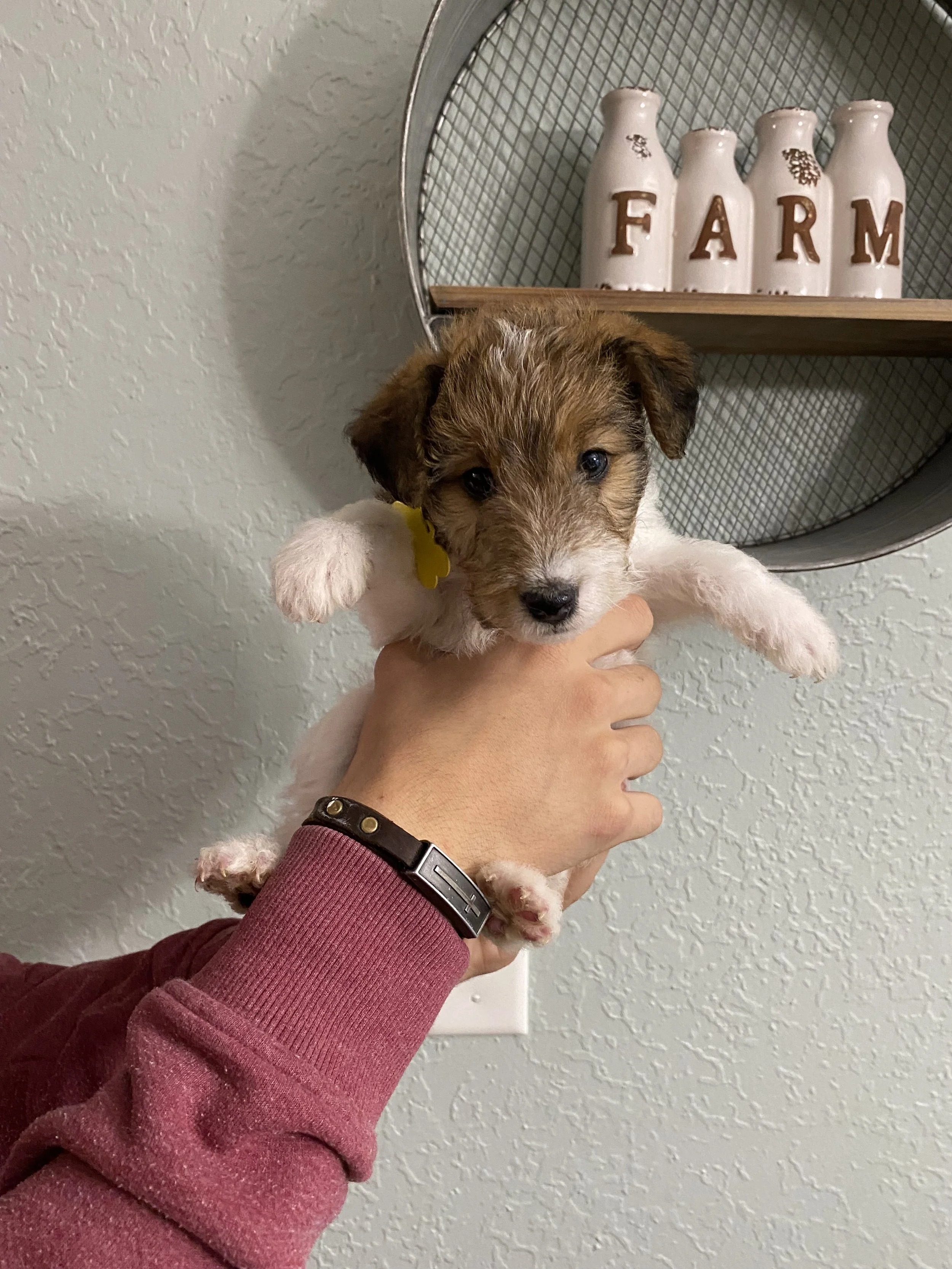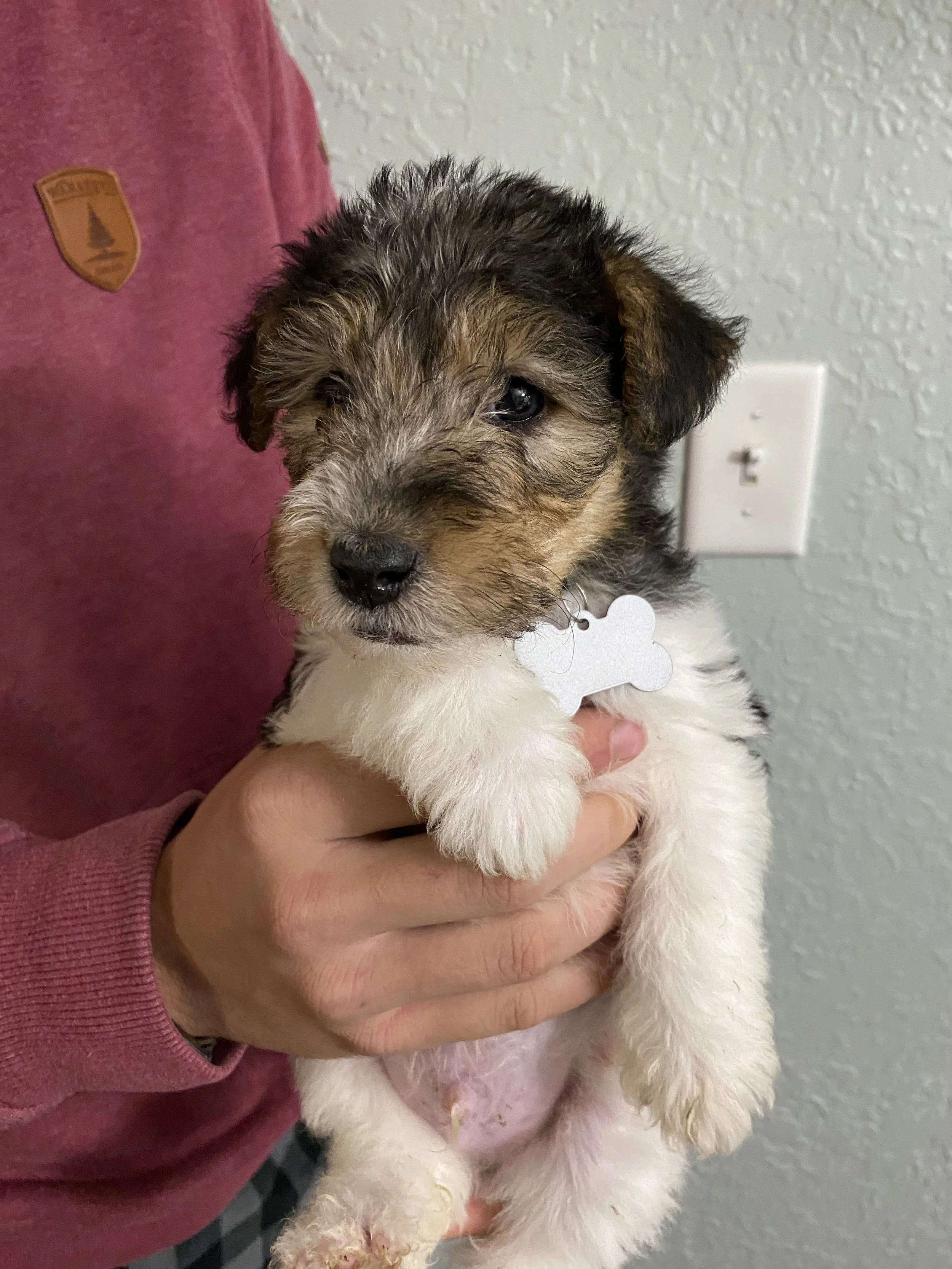 Two weeks old old and already sleeping like a Wire Fox Terrier likes to sleep… on its back with legs up in the air.