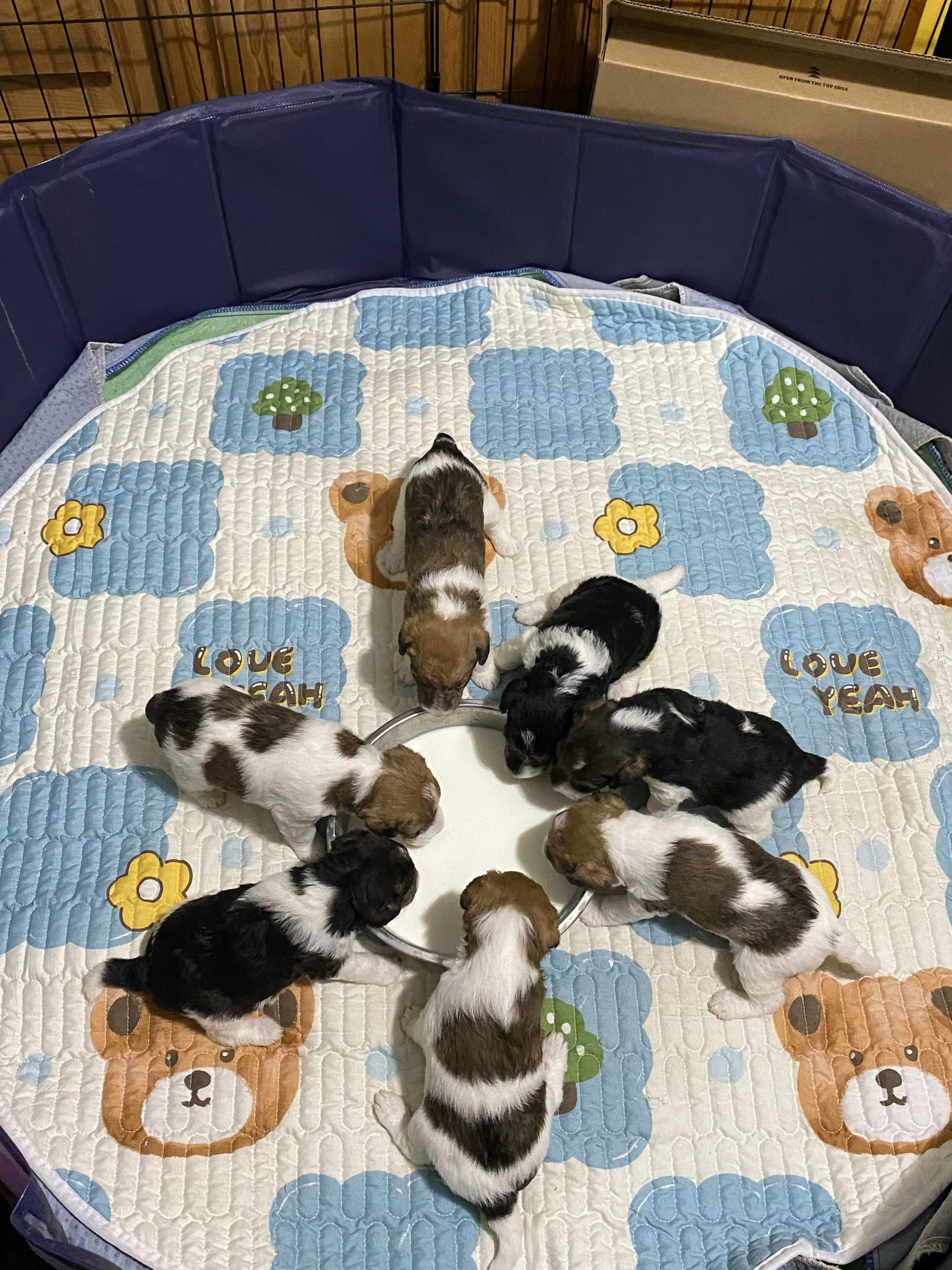 It always amazes me how the puppies naturally gravitate to the crate to sleep and come outside of it to eat and do their business—SO SMART!